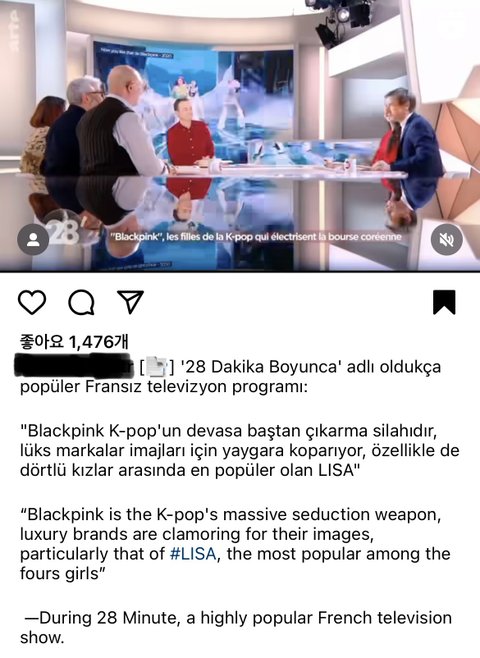 리사판글 올라오면 비공 ㅈㄴ박히고 인종차별 악플 드글대던데 또 보란듯이 이런 좋은 소식 들고와주네ㅋ 이런건 또 악개 발작버튼이라 톡선 좀만 오르면 겁나 몰려올것같음ㅋㅋㅋㅋ 그래봤자 프랑스에서 리사 인지도 젤 높고 프랑스 인기 TV쇼 패널들도 블핑중 리사가 젤 인기 많다네ㅋㅋㅋ