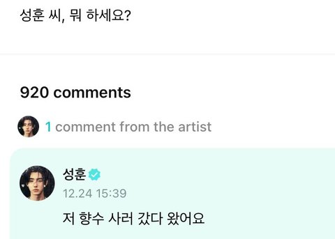 위버스에서 성훈이 오늘 향수 사고 왔는데