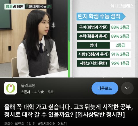 근데 내신 7등급이긴 해도 진명여고면 목동에서 ㅈㄴ 빡세기로 유명한 갓반고라서... 아무리 내신 버렸다고 해도 아예 쌩노베는 아니고 어느정도 공부 습관이 있던 사람인 것 같음 그래도 ㅈㄴㅈㄴ 대단하다 ㄷ