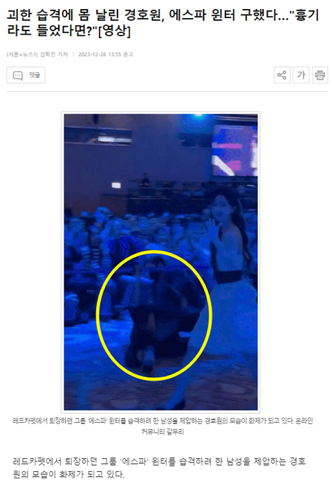 이때 한 남성이 카메라를 들고 빠른 속도로 에스파를 향해 돌진했다.