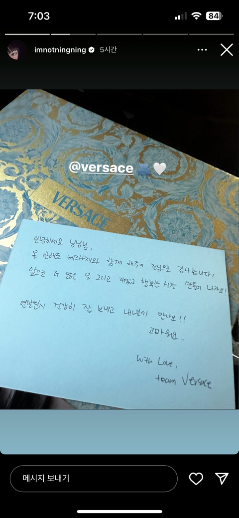 닝닝 베르사체에서 받은 편지 글씨체 왜이래..?