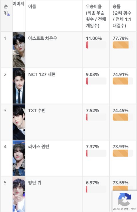 남돌 전체 외모순위