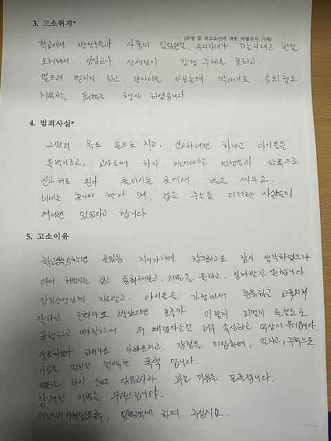 이런 폭력을 당한 저희 아이가 이 학교에서 그 선생님을 계속 마주해야 한다는 사실이 겁이 납니다.