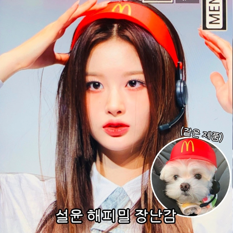 우리 강아지 씌울려고 해피밀 모자 샀는데 강아지한테 너무 커서 내가 써봤는데 터질라그럼;;;