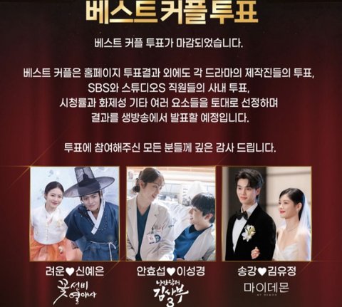 SBS연기대상 베스트커플상 투표끝나고, 지금 갑자기 추가된 공지사항