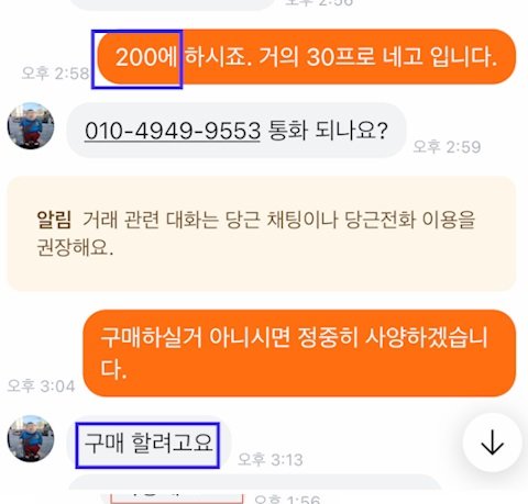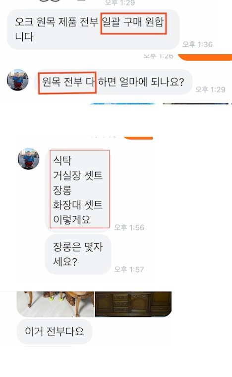 저는 당근을 이용하여 중고 엔틱가구 14종을 팔기위해 올려놨습니다.일반 사람이 아닌 중고가구 업자에게 연락이 왔고, 대화를 나눴습니다.