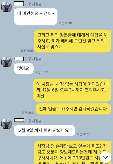내용을 정리한 영상은 유튜브에 있습니다. 영상이 길어 2배속으로 해서 들으셔도 무방하겠네요. 투명하게 이 일을 알리고싶어 통화녹음도 다 올려놨고, 가구 사장의 말만 들으면 기다려줄 수도 있는거 아니야? 라고 생각하겠지만.