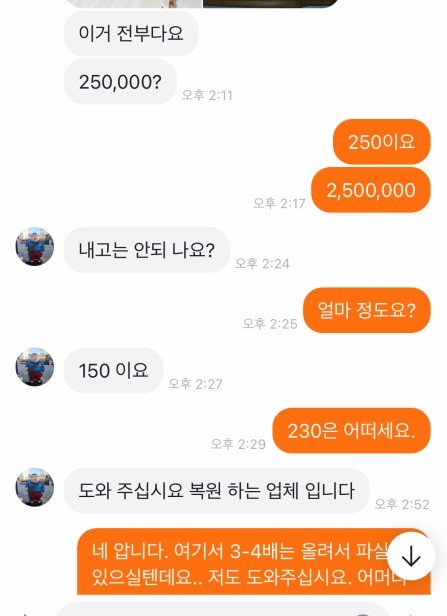 저는 당시 상속절차를 혼자서 밟아야 했기때문에 바쁘기도 했고, 이 업자는 당근 매너지수도 높고, 사업자를 하는 사람이였기에 이렇게 사기칠줄 몰랐습니다.