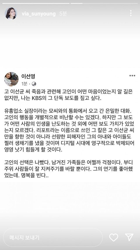 이선균 죽음에 대한 이선영 아나운서의 소견