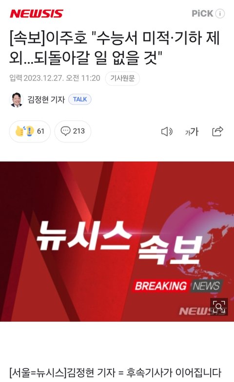 에휴.. 수학만 조지는 게 아니라 탐구도 없어짐 통합사회 통합과학으로 통일됨 진짜 미적벡터물리화학 모르는 체로 공대를 어케 가냐고 심지어 지금 수학 교육과정도 다른 나라들에 비해 기괴할 정도로 적은데 저딴 거 건드릴 시간에 고전시가나 없애든가
