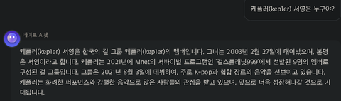 케플러(kep1er) 서영은 누구야? 네이트 AI챗 문답