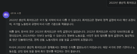 2023년 생산직 최저임금 네이트 AI챗 문답
