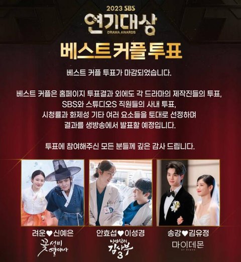 이에 일각에서는 SBS가 시청자 의견을 무시하고 본인들이 원하는 커플에게 상을 주려고 하는 게 아니냐는 의혹이 제기됐다. 또 송강이 ‘2023 연기대상’ 불참 소식이 전해지면서 SBS가 송강, 김유정에게 상을 주지 않겠다는 의도가 다분해 보인다는 해석에 힘이 더해졌다.