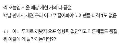 씩 오늘임 서울 매장 재현 거의 다 품절