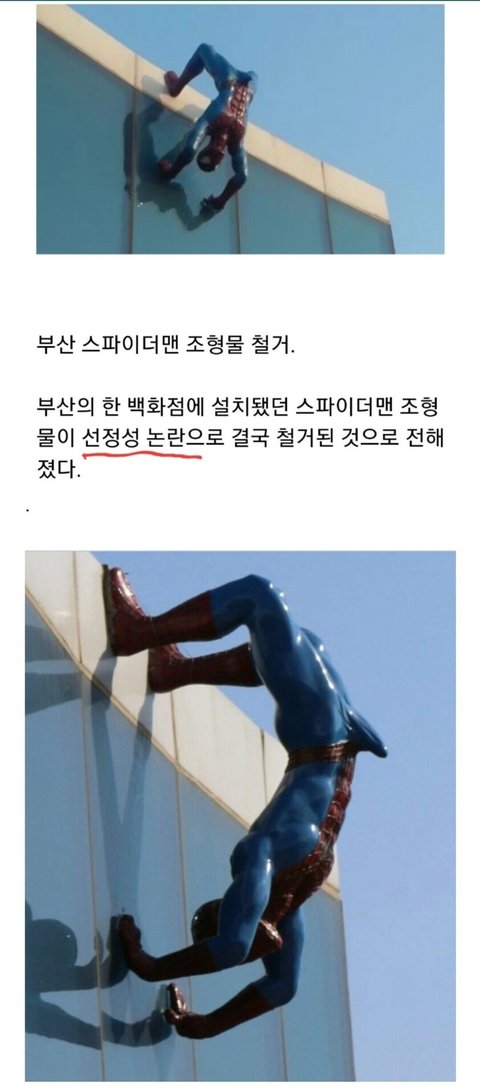 부산 스파이더맨 조형물이 철거된이유