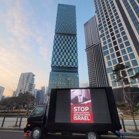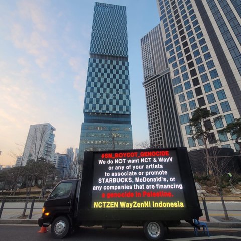 오늘 팔레스타인 지지하는 국가 인도네시아 팬분들이 스엠 본사에 트럭 보냈대