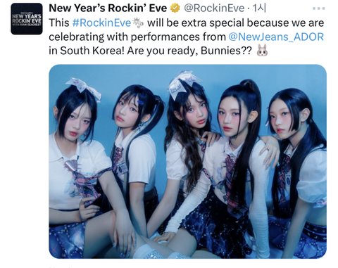 락킹이브 공연하나봄ㅋㅋㅋㅋㅋ 락킹이브 12/31 뉴욕 타임스퀘어에서 하는 그 공연 맞음ㅇㅇ 진심 요며칠 뉴진스 까글 ㅈㄴ 올라오더니 ㄹㅇ판까흥 증명하네ㅋㅋ