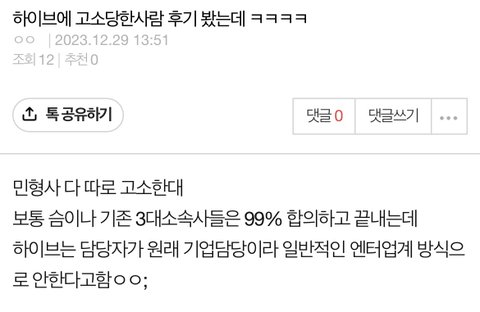 하이브 고소 무서운점ㄷㄷㄷㄷ