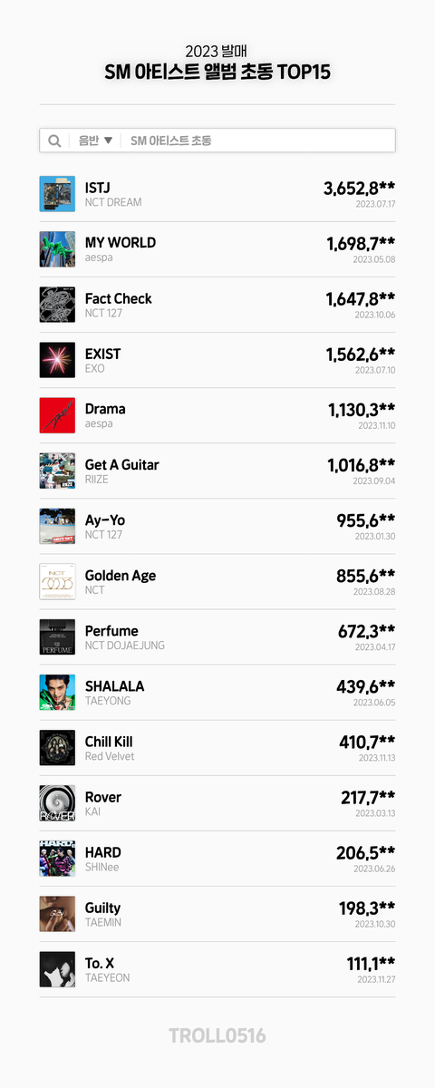 2023년 SM 초동 순위