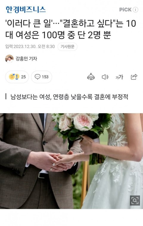 10대 여성 100명중 98명이 결혼 부정적이래