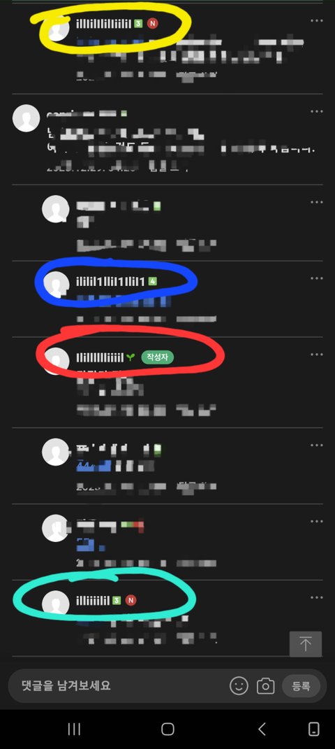 대충 찍은거고 하나의 글 속 댓글에 열명 정도는