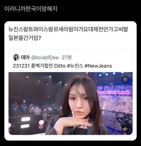 +한국가수가 연말에 한국연말무대 안나오고 일본연말무대 가서 일본가수들 들러리하고있는 상황 자체가 ㅈㄴ비상식적인데 일뽕 엄청 몰려왔네ㅋㅋㅋㅋㅋ
