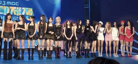 가요대제전 엔딩 때 단체샷 이렇게 보니 아이브 진짜 크네.. 카메라 각도 감안해도 평균키가 아이브 169.6, 에스파 163.7, 아이들 161.8