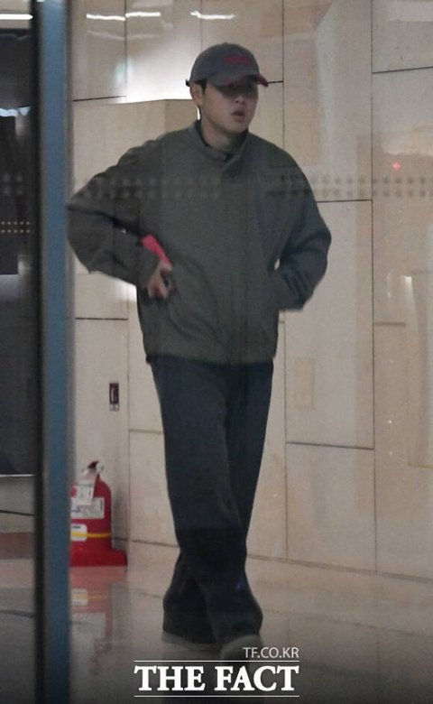 북중미 월드컵 아시아 지역 예선 싱가포르와 경기를 위해 귀국한 축구 국가대표 이강인이 경기를 하루 앞둔 15일 저녁 이나은을 만나기 위해 서울 여의도의 한 호텔 주차장에서 모습을 드러내고 있다. /임영무 기자