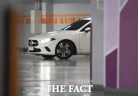 중미 월드컵 아시아 지역 예선 싱가포르와의 경기 전날 이강인과 호텔 주차장에서 데이트를 즐긴 이나은의 차량. / 배정한 기자