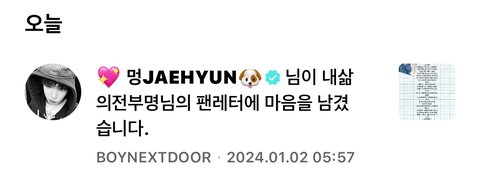 나 오늘 새벽에 너무 잠이 안 와서 그쯤이면 재현이 비행기 탓을 거라 생각허고 글 썻는데.. 아침에 일어나보니깐 위버스 알림이 뜬 거야…. 봣더니!!!! 명재현이 내 팬레터에 하트 눌러줌ㅜㅜㅜㅜ 진짜 멍뭉이가 최애인데 최애가 내 팬레터를 끝꺼지 다 읽고 하트를 눌러줫을 거 생각하면 진짜 너무 행복함❤️