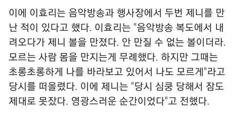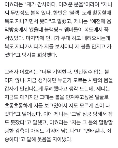 이효리 : 음악방송 복도에서 내려오다가 제니 볼을 만졌다