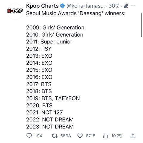 진짜 딱 싸이 방탄만 빼면 다 슴이 대상이네ㅋㅋ