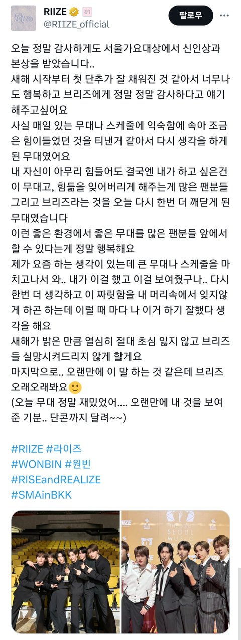 라이즈 원빈 장문의 트위터 올려줌