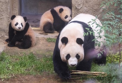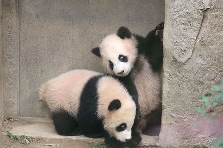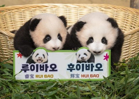 3일 국내 첫 쌍둥이 자이언트 판다 '루이바오'와 '후이바오'가