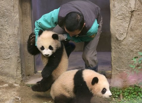 이 날 강철원 사육사는 "태어날 당시 각각 180g, 140g에 불과했던 아기들의 체중이 현재 모두 11kg을 돌파하고, 최근에는 엄마를 따라서 잘 걸어 다닐 정도로 건강하게 성장해 방사장 나들이를 시작하게 됐다"며 "쌍둥이 판다도 서로 의지하면서 새로운 환경에 빠르게 적응해가고 있다"고 말함