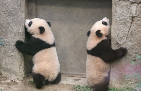 그제서야 루이바오와 후이바오는 지형을 살피고 냄새를 맡는가 하면