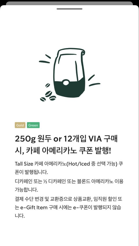 이제 스벅 비아 먹을때 무료쿠폰 안준다 ㅜㅜ알고 있어!!