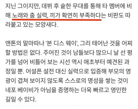 한국은 어쩌고 할 애들 있을까봐 미리 말하는데 미국은 네포 베이비까려고 셀럽들이 티비쇼 나와서 주제 넘는다고 욕 뒤지게 하고 인스스로 저격함 미국이 인맥빨도 있지만 능력주의 사회라서 지금 한국보다 네포 베이비 더 싫어하는 게 미국임 이 분야 선두주자 릴리 로즈뎁 까이는 거 보면 아무리 부모님 후광이 있더래도 정신병 안올 수가 없음