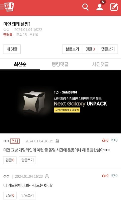 지가 글쓰고 자분하다 쓰니표시걸림ㅋㅋ 그리고 급하게삭제ㅋㅋ