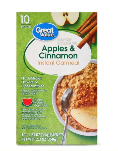 1.Great Value Apples and Cinnamon Instant Oatmeal
