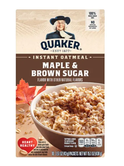4. Quaker Maple & Brown Sugar Instant Oatmeal