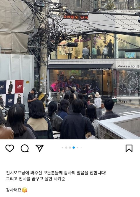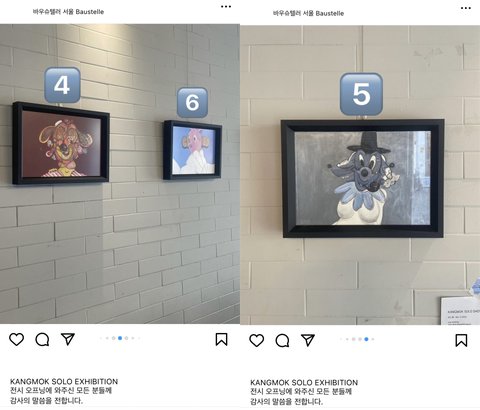 참고로 벽에 걸린 액자들은 다 지난 11월 바우슈텔러 2층에서 열렸던 강목 작가의 전시회 작품들임