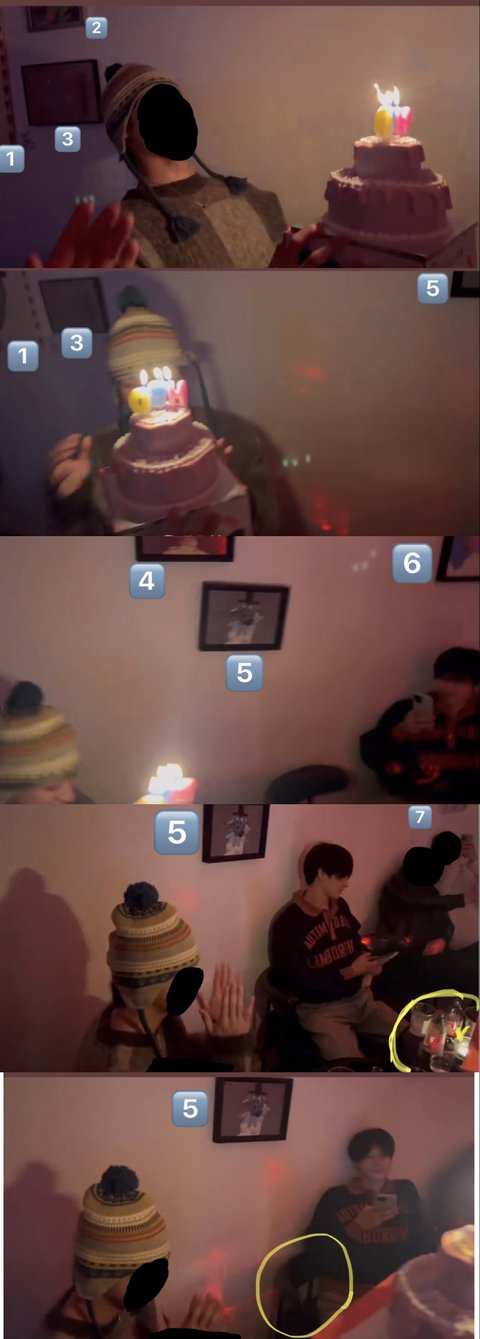 (한눈에 쉽게 비교하기 위해 글쓴이가 임의로 액자는 번호, 테이블•의자•양초•천장 몰딩은 노란색으로 표시함)