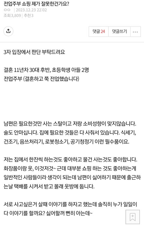 [원본지킴이] 전업주부 쇼핑 제가 잘못한건가요?