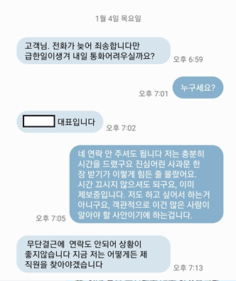 고객이 이미 불만이 있는 상태로 전화를 했음에도 그 대응이 너무나도 미흡했고, 직원은 잘못했지만 대표라도 책임지고 제대로 응대했으면 이해했을거야.