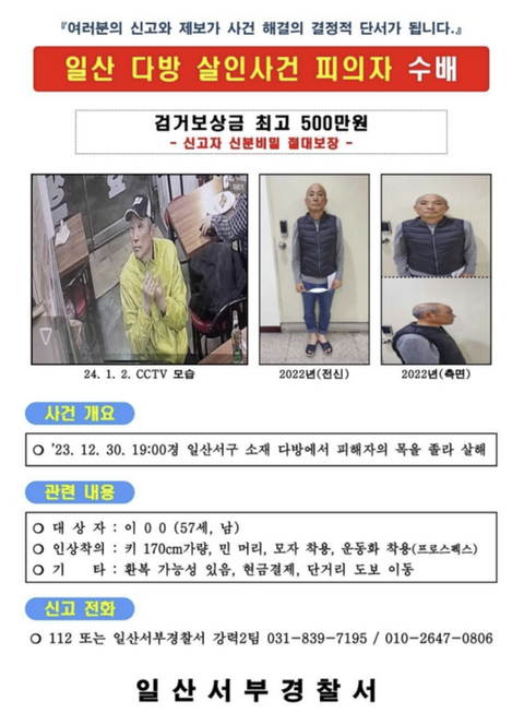 SBS <궁금한 이야기 Y>에서는 지난 12월, 경기도 고양시에서 카페 주인인 60대 여성을 살해한 뒤,지난 5일 경기도 양주시 광적면의 한 카페에서도50대 여성을 살해한 이 씨에 대한 제보를 기다립니다. (* 제보자의 신변은 철저히 보호됩니다.)