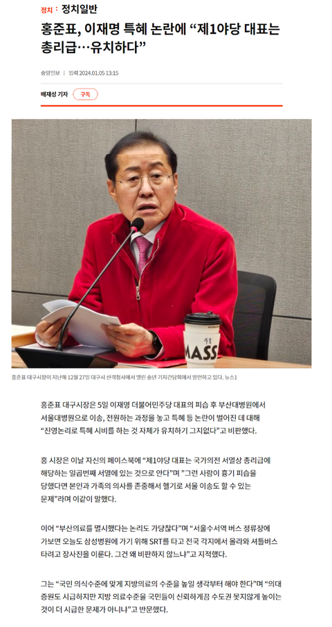 이게 상식 아닌가? 치료한 의사가 1mm차이로 동맥을 비켜갔다고 하든데 그 정치인이 맘에 들든 아니든 제1야당대표다. 국민의 반이 지지하는 당 대표인 사람이 대낮에 칼에 찔렸는데 특혜 어쩌구... 진짜 이 나라 기레기 정치판 수준이 이정도인가 싶어서 참담하다.