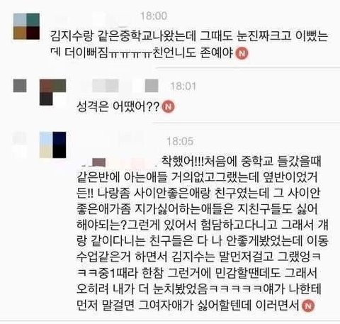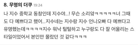 지수가 학창시절 인기를 떠올렸다.