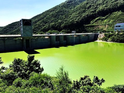 영주댐에서 녹조라떼가 만들어졌었을 당시의 사진인데,