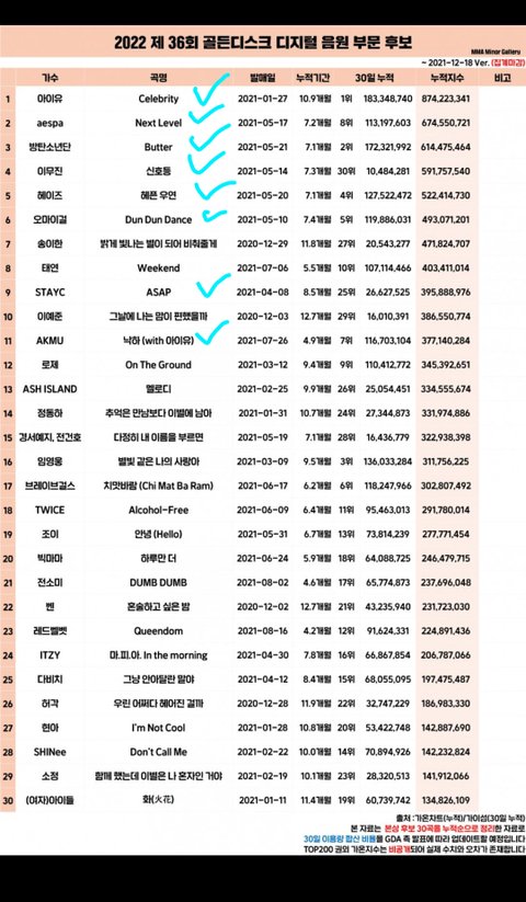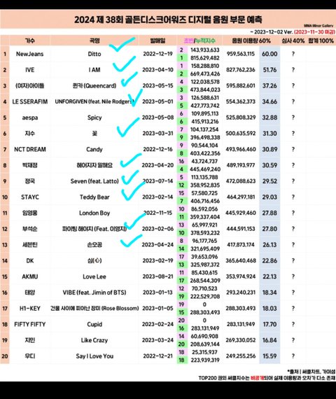 뉴진스 민지 하니 아이브 장원영 안유진 에스파 윈터 카리나 세븐틴 원우 정한 버논 방탄 정국 뷔 지민 엑소 카이 세훈 아이유 스키즈 리노 방찬 투바투 연준 수빈 태연 엔시티 127 드림 지성 해찬 스테이씨 블랙핑크 지수 제니 르세라핌 김채원